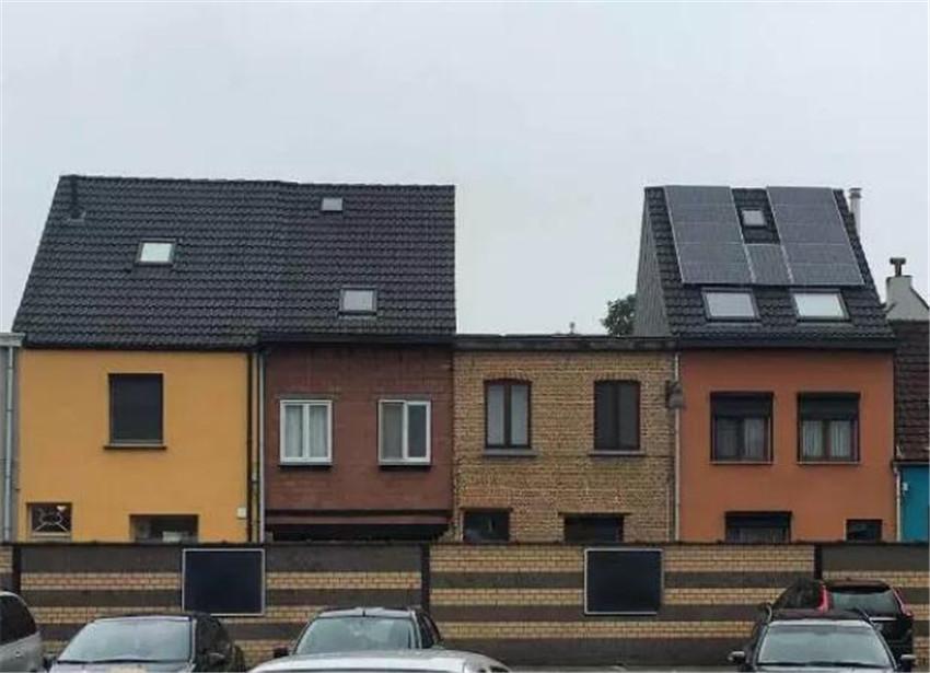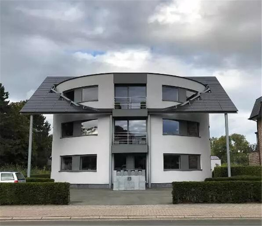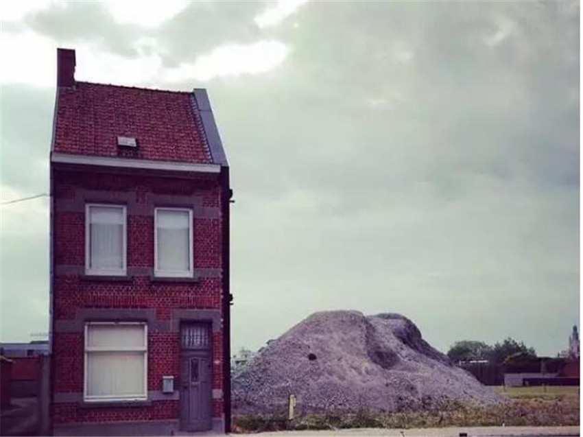 在他的鏡頭下,比利時的醜房子還有很多,比如這個彷彿中間消失了一樣的建築話說中間空餘這麼大一片面積是為了什麼呢?
