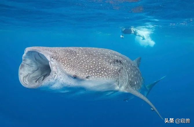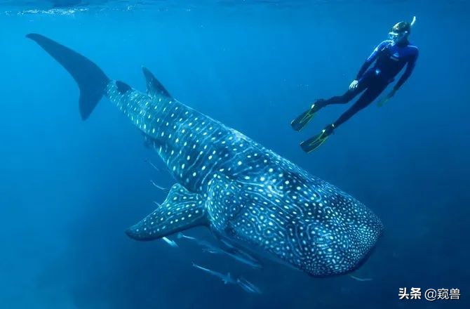 一是躲,所以鯨鯊的深潛能力一流,可潛到水下2000米的地方躲避虎鯨的獵殺。二則是撞,體型巨大兼皮膚厚度超過10釐米,噸位如此之大,最脆弱的地方就是眼睛。所以為了撞擊敵人而不把眼睛撞壞,戴個“護目鏡”不為過吧。卵胎生的鯨鯊,一次懷胎可達300條! 鯨鯊很早就被人類發現,受限水下技術原因,相關的研究非常稀少。所以在20世紀中期以前,關於鯨鯊是胎生或卵生的繁殖方式,學界並不能確定。在1954年,人們在墨西哥灣的一次拖網上發現一些覆有鯨鯊胎仔的卵殼,所以很多科學家斷定鯨鯊屬於卵生。