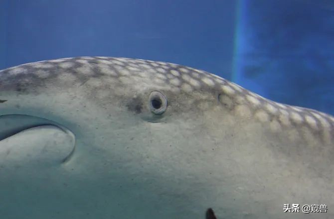 鯨鯊是三大濾食鯊魚之一,其他兩種分別是巨口鯊、姥鯊。鯨鯊濾食的目標主要是一些微小的浮遊生物,一天的飯量也就21公斤左右,還沒有大熊貓的飯量大。不過浮遊生物提供的能量太少,因此鯨鯊還會吃一些小型魚類,如小鮪魚、沙丁魚、鯖魚等聚群性魚類。鯨鯊的濾食方式和濾食性鯨類相似,大口吸入一口海水,閉上嘴巴,海水從鰓處排出。然後浮遊生物就被鰓與咽喉間皮質鱗突形成的過濾器“篩”出來,任何大於2至3釐米的東西都會留下,最後被鯨鯊吞吞下去。武裝到眼睛?鯨鯊眼球上竟佈滿盾鱗! 作為一種濾食性鯊魚,決定了鯨鯊與世無爭的性格。但日本的海洋生物學家發現,鯨鯊的眼球上竟佈滿了成千上萬的細小‘牙齒’,就像盔甲一樣。