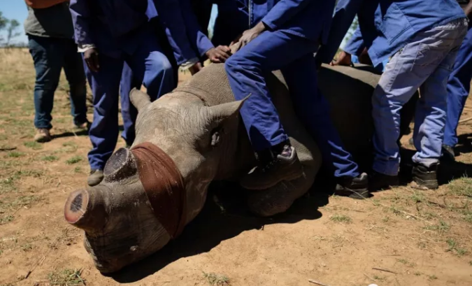 △ 工人們主動割掉犀牛角,以防止這些瀕危動物被盜獵者殺害
