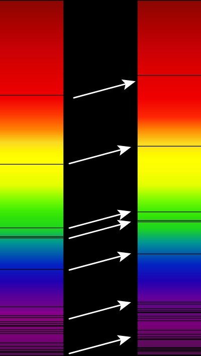 遙遠的星系在我們地球上看來其所發出的光向光譜的紅端發生了移動,這個觀測結果是20世紀最偉大的發現。如果用多普勒-菲索效應解釋的話,就會得出來一個驚人的結論,宇宙中的星系在快速的遠離我們。