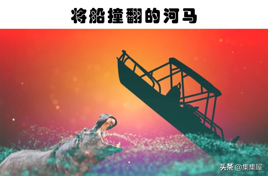 第二次世界大戰快結束時,盟軍發動進攻,從日本人手中奪回堡壘。隨著英軍的推進,它迫使敵方戰鬥人員進入緬甸蘭裡島周圍的茂密沼澤。這些人並不知道,紅樹林沼澤裡擠滿了鹹水鱷。結果,1000人中,只有400人活著出來。倖存者說,幾十條鱷魚的出現,很快將這些人拖向了鱷魚當中。這成為有史以來,鱷魚襲擊事件中,最多人死亡的記錄。7、將船撞翻的河馬