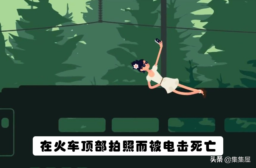 在羅馬尼亞,一名女子試圖躺在火車頂部進行標誌性的自拍,但她所做的一切,沒有按照預期的進行。在拍攝照片的時候,她抬起了一隻腳來擺姿勢,但也就是在這個時候,她的腿碰到了頭頂上帶電的電線,並導致了嚴重的電擊。該電壓達到了27000V,使得她瞬間被大火燒死。4、與行駛中的火車合影自拍而被撞死的女子