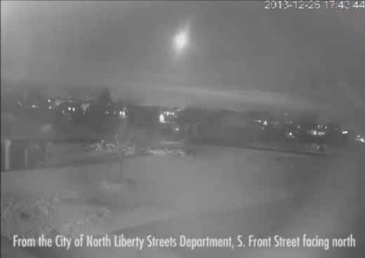 ▲不明發光物飛愛荷華州上空,疑隕石墜落。(圖/翻拍自YouTube)國際中心/綜合報導近日一個不明發光球劃過美國天際,愛荷華州(Iowa)不少目擊者看見這個疑似隕石的燃燒球體,一閃一閃地穿過愛荷華州跟明尼蘇達州邊界,雖然官方未對此事發表意見,許多人好奇這個超亮火球是「何方神聖」,約有700人同時向流星協會(The American Meteor Society)報告目擊此事。國外媒體紛紛報導,疑似有隕石再襲地球,當地監視器畫面錄下這難得的瞬間,只見畫面中右上方又大又亮的燃燒火球,由遠而近越過天空,當天有數以百計的居民,聲稱直擊「像太陽那麼亮的」,也有人傳「飛碟來了」,但專家認為,比較合理的解釋可能是隕石類的物體。
