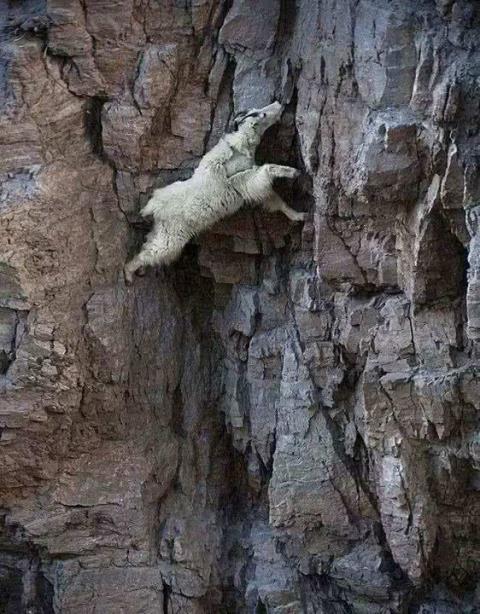 第四張來自於北美的雪羊,他在兩個懸崖峭壁之間進行飛快的遊走,而這兩個峭壁都呈現90度的直角,對於人類來說,這是完全不可能完成的壯舉,雪羊如同有神助一般從崖頂向下一直到達谷底,十分令人震撼。