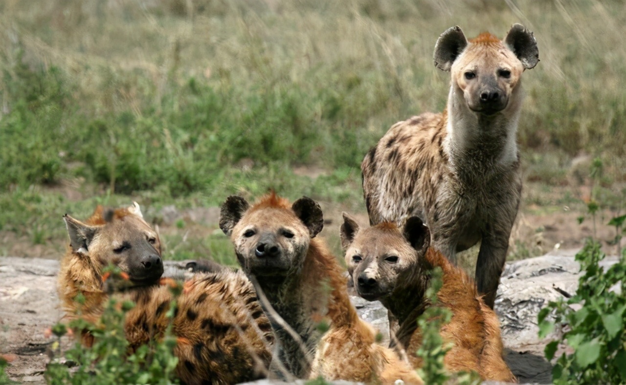 而且這種生物在食物匱乏的時候,跟禿鷹一樣還能食用腐肉,因此它們的生存能力要比獅子好得多,也是草原上了垃圾清理者。可以說成群的鬣狗待在一起,基本上沒啥弱點。