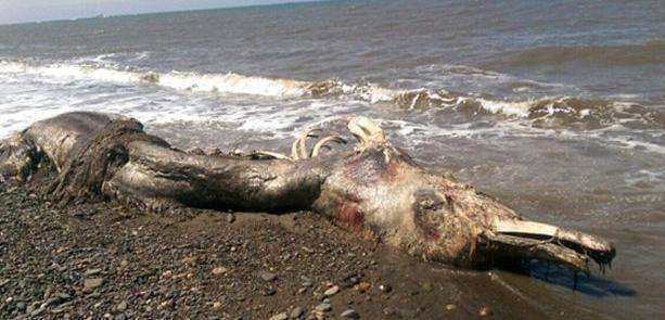 在俄羅斯庫頁島附近的海邊,曾有漁民發現過一隻這樣的“怪獸”屍體,它的體長約有4米,體型十分巨大。但由於高度的腐爛,雖然附近漁民及時將此消息報告給研究人員,但仍沒有人能分辨出這到底是一隻什麼生物。