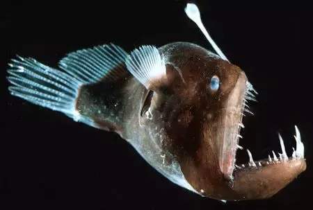 它們有一個非常省力的辦法,我們知道深海中暗無天日,可人家鮟鱇魚頭頂上有一個生物發光器官,平時它們把自己埋在海底的泥沙裡,張大嘴巴,然後把頭頂那個放光器放在嘴巴裡。