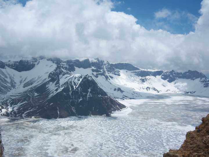 冬天長白山寒冷至極,天池水面冰封一切,湖面上除了寒冰白雪沒有再無他物,而夏天的長白山則是生機盎然,湖面上碧波粼粼,水波蕩漾一望千里。