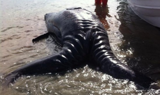 後來專家們趕來發現,這是一頭連體雙胞胎灰鯨,由於正常出生的鯨魚長度一般為12到16英呎,而這頭灰鯨卻只有7英呎長,專家斷定這是由於早產導致的死亡。