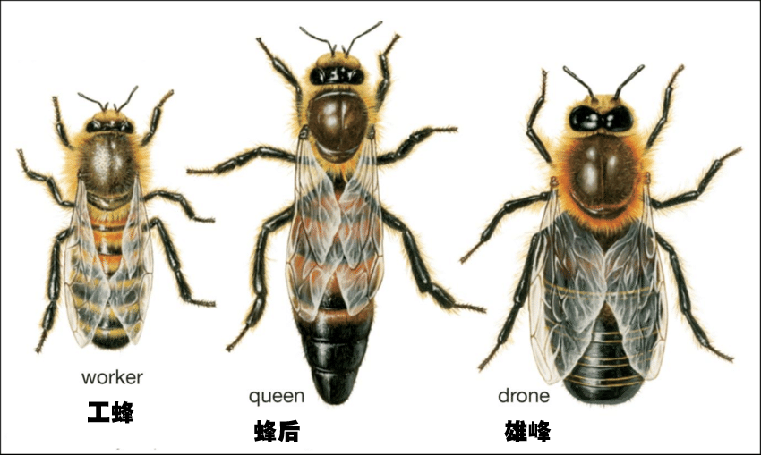 雄性蜜蜂是有蜂王的卵子發育而來,並不需要和精子進行結合,而雌性蜜蜂則是需要蜂王和雄性蜜蜂進行交配產生,而雌性蜜蜂在出生之後,如果能夠連吃5天以上的蜂王漿,就會直接發育成為蜂王,否則的就會成為發育不完全的工蜂。