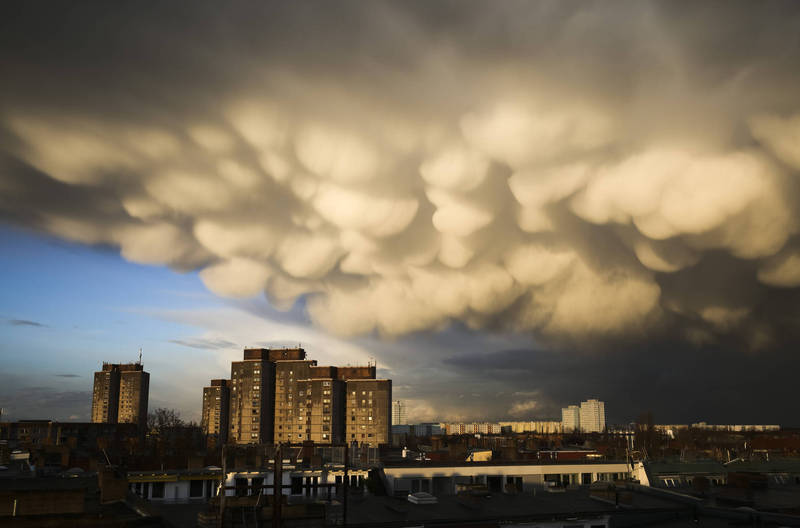 據了解,柏林當地出現的是乳狀雲,又稱「乳狀積雲」,是在積雨雲下方形成的乳狀型積雲,當下降氣流當中溫度較冷的空氣與上升氣流中溫度較暖的空氣相遇,就會形成大量像袋子形狀的乳狀形雲。