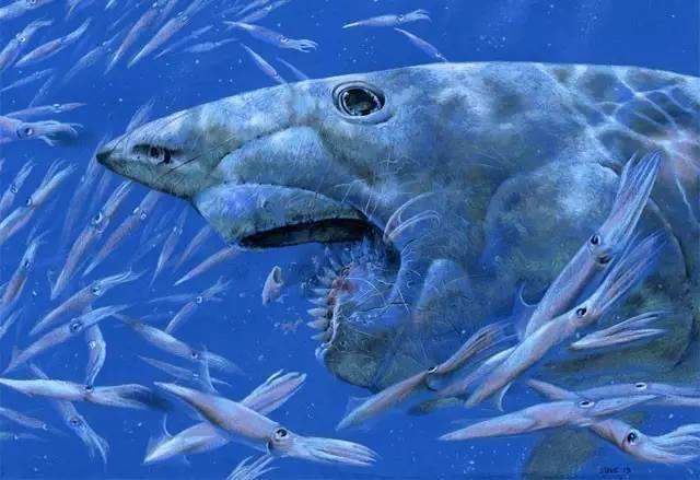 那是大約4億年前的事了,地球正處在地質上的奧陶紀到志留紀,海洋廣佈,珊瑚礁林立,氣候炎熱乾燥,整個地球上的造山運動十分強烈。就在這種海洋環境中,從脊索動物中逐漸演化出更高等的脊椎動物,魚類包括最原始的鯊魚——古鯊出現了。於是,鯊魚的前世、當今鯊魚的老祖宗游弋在海洋中,開始了漫長的生命之旅。