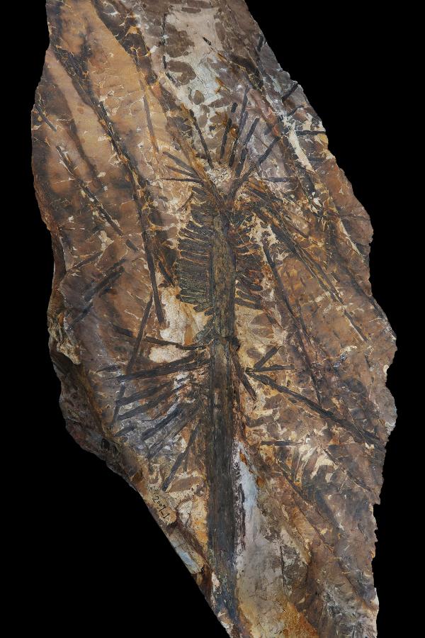 通過化石,科研人員能夠清晰還原出烏海擬齒葉的樣貌。這種樹木高5米至6米,下半部分是一根光禿禿的樹幹,樹幹頂端長著樹葉和繁殖器官:果穗。果穗呈圓柱形,直徑約1厘米、長約10厘米,上面長滿了繁殖用的孢子,外觀上看,很像一個拉長的松果。而烏海擬齒葉的樹葉形態,則類似現在的杉樹樹葉。