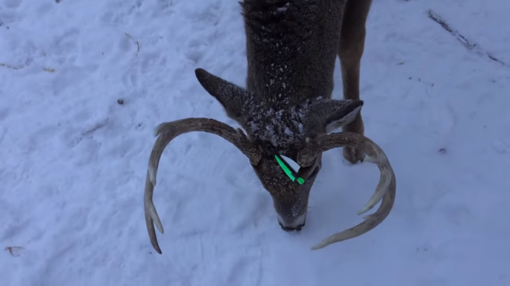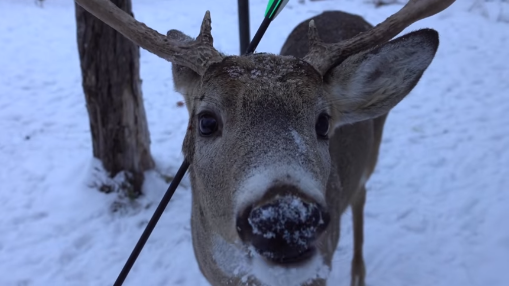 卡佛出去看時,感覺非常心痛,一隻綠色尾翼的碳纖維箭,在鹿角附近穿過胡蘿蔔腦部,從耳朵下方鑽了出來,讓人觸目驚心。傷口沒有出血,似乎避開了大的動脈和重要器官。