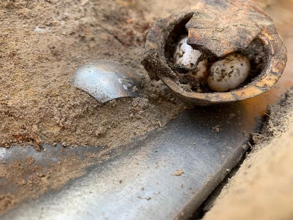 照片中可見,海龜殼底下破了一個大洞,而裡面藏著2顆橢圓狀的蛇蛋,把龜殼當成孵化庇護所,宛如保護牠們的外殼,讓蛇蛋不易受掠食者捕食,照片也被分享至臉書社團「Alabama Wildlife and Freshwater Fisheries Division」,提到目前無法確定蛇的種類,牠們顯然非常聰明。