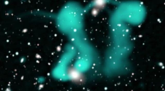 經過一周的研究,科學家們得出結論,「跳舞的鬼魂」是兩個宿主星系,其中心都有巨大的黑洞。看起來像是在跳舞的奇怪幽靈形狀,是電子在星系間風的作用下彎曲形成令人困惑的形狀。