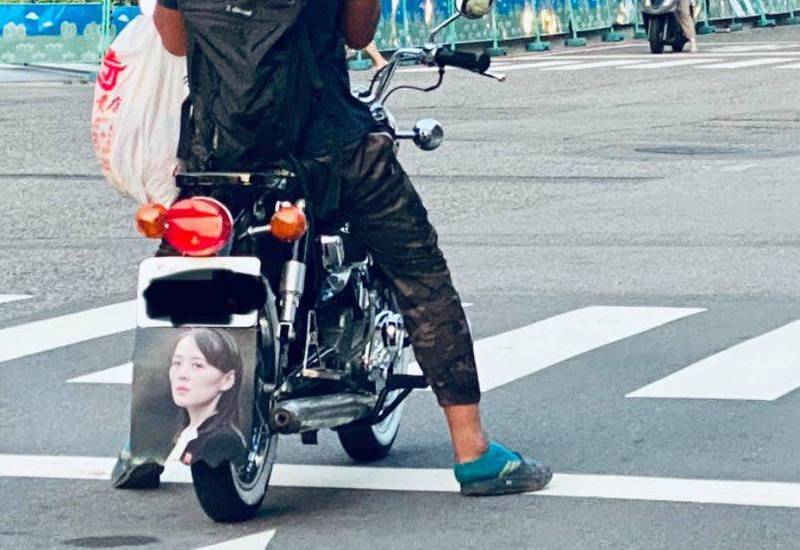 1名男網友在臉書發文說,日前等紅燈時,意外發現前方騎士竟裝了女偶像擋泥板,相當復古,仔細一看發現,照片中的人竟是金正恩妹妹「金與正」,他趕緊拿起手機捕捉,上傳臉書分享,直呼「帥哥…你眼光很高喔…這位偶像不好追呢XXD」。