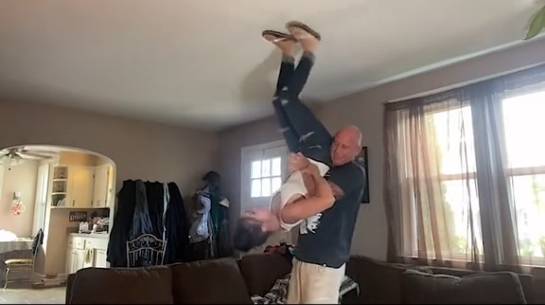 網紅夫妻Mav和Mandii在TikTok上分享,因樓上鄰居常常在半夜發出噪音,讓夫妻倆無法好好睡覺,於是他們決定「以其人之道還治其人之身」,也製造噪音報復對方,影片可見,丈夫將妻子整個人反轉抱起來,讓妻子可以在天花板上踱步、走動,就像在地面上一樣。