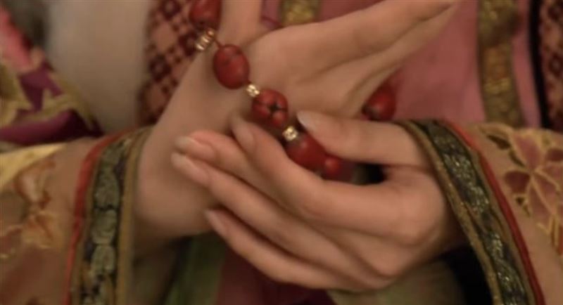 珊瑚飾品總共在《甄嬛傳》中出現2次,一次祺貴人脖子上戴著的項鍊,而這條項鍊,就是皇后贈送的,看起來好似珊瑚串,其實根本就是讓她無法受孕的「麝香串」,這都是皇后埋藏的陰謀;而另外一次,就是甄嬛的珊瑚手串,當時她誕下龍鳳胎,果郡王送上的禮物。