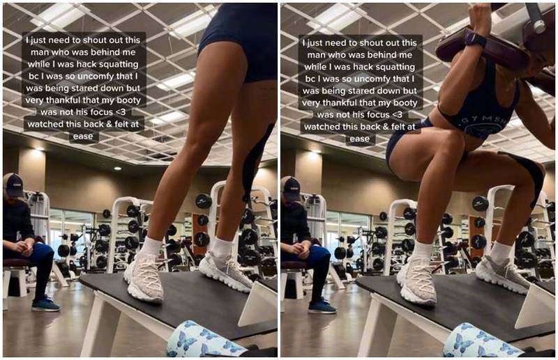知名健身網紅克莉斯汀森(Libby Christensen)本月2日在抖音(Tiktok)分享自己在健身時的影片,片中可以看到克莉斯汀森正在做深蹲,後方一名正低頭休息的帽子男完全沒有分神偷看,隨後就專心繼續自己的運動。