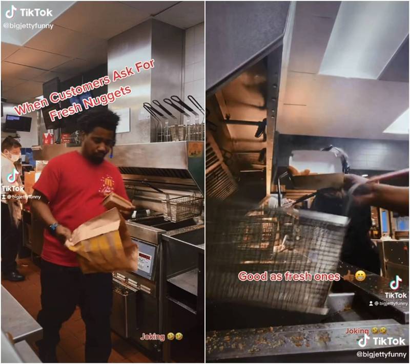 根據英媒《每日星報》報導,國外網友於2021年12月29日在抖音帳號「@bigjettyfunny」貼出影片,只見身穿麥當勞制服的他,正在廚房後台工作,而他也在影片透露,若是客人請託「新鮮現炸」的雞塊時,他會重新將炸好雞塊,放入油鍋加熱。