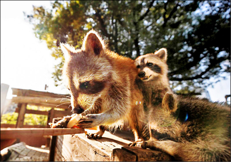 浣熊搶食蔬果船及特製雞蛋春捲。(竹市府提供)