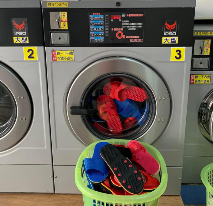 1名男網友在臉書社團「爆廢公社」發文分享,妻子日前到自助洗衣店洗衣,發現其中1台洗衣機竟被用來「洗拖鞋」,但店家早已在洗衣機上方貼上「謝絕清洗寵物用品、腳踏墊、鞋子」的標示,畫面相當諷刺,原Po看了也直呼傻眼,目前也已經連繫洗衣店老闆,老闆則將調閱監視器追查。