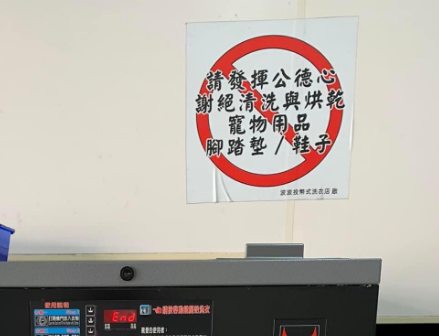 店家有在洗衣機上方貼出明確公告。(圖擷取自臉書社團「爆廢公社」)