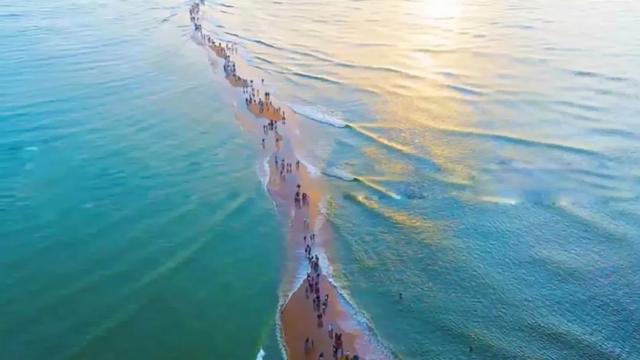 但這確實是一個自然現象,每個人都很驚訝看到它。這吸引了很多當地人甚至遊客來此,人們來到這裡就是為了去沙地上走走。