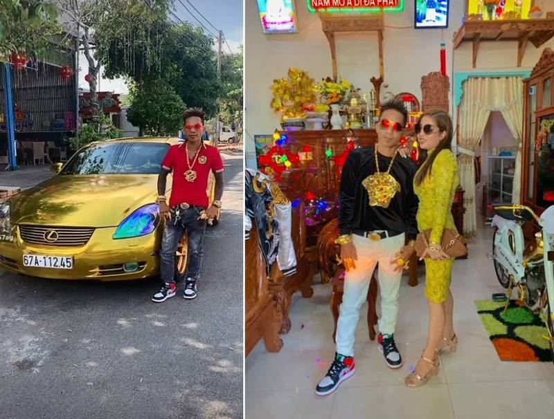 〔即時新聞/綜合報導〕衣著風格可以看出一個人的品味,越南39歲男子陳德來的品味核心則是「炫富」;這名新生代熱門TikToker靠炫富影片吸引大批粉絲,他自稱深信風水,覺得自己命中帶金,金色可以為他帶來好運,於是每次出門都要掛上大量金飾,還把車子整台鍍金。誇張行為為他帶來大量流量,影片最高點閱達到1340萬次點閱。