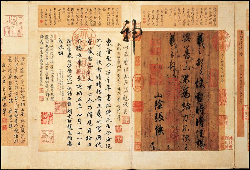 在乾隆的收藏當中,他的最愛就是王羲之的《快雪時晴帖》,為了表達對作品的喜愛,光蓋上滿滿的印章還不夠,乾隆不但在卷首寫下5首題詩,甚至要求臣子在上面題字、作畫,多達70處,更在作品上方寫下一個大大的「神」字,儘管這些文字和印章具有一定的歷史價值,但同時也破壞了原作品的藝術價值,讓專家們頭痛不已。