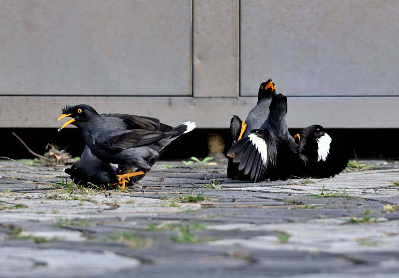 台東森林公園上演泰國八哥黑幫火拚。(莊姓鳥友提供)