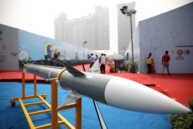 印度今日朝巴基斯坦射擊了一枚飛彈。圖為印度與以色列公同開發的閃電(LRSAM)飛彈。(歐新社)