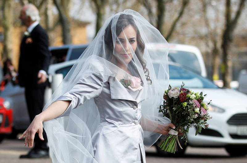 阿山吉今天身穿蘇格蘭短裙,與穿著銀色婚紗的莫里斯完婚,兩人的禮服都由曾表態支持阿山吉、反對將他引渡美國的龐克教母魏斯伍德設計。