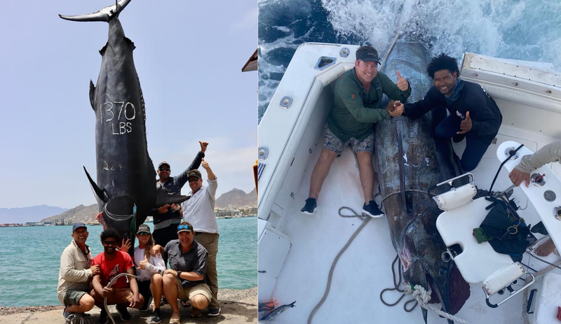 現年50歲的漁夫沃斯特(Ben Vorster)、蓋哈特(Gerhardt Vorster)、羅斯(Michiel Ross),3人日前一起前往非洲維德角群島(Cape Verdes)附近海域,展開為期6天的釣魚之旅。沒想到在旅程最後1天,竟然意外釣起1條長約12英尺(約3.6公尺)、重達1370磅(約621公斤)的超巨大大西洋藍槍魚。