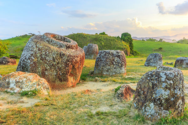 很多石罐上都雕刻著人物的圖像,有男性也有女性,有的人站著手持武器。這些石罐分散在山脊和山坡上,這一點和以前發現的石罐遺址一樣。