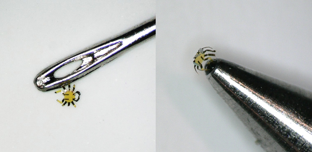 西北大學研究開發的螃蟹形微型機器人,甚至比已經難發現的跳蚤還小,達次公釐級既小又輕,更難被發現。不過移動速度也不算快,每秒約能以身長一半的速度移動。