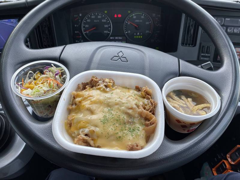 推特名為「こたけ」的網友,8日分享了1張照片,只見汽車方向盤原本給駕駛掌握的把手,上頭置了3個餐盒,尺寸非常剛好,餐盒完美卡住,沒有掉下來的問題。原PO說,當天買了SUKIYA(すき家)外帶牛丼套餐,在車上吃,意外發現這個有趣的事,他在貼文裡直呼,「這方向盤根本是為了SUKIYA的外帶盒而設計的!」