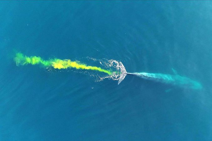 一般來說,藍鯨因為食用磷蝦,排泄物通常是淡紅色,但這頭藍鯨排出的卻是與眾不同的金黃色。魏瑟說,他從來沒看過,也沒聽說過藍鯨排出這種顏色的糞便,因此牠八成是吃了不同品種的磷蝦。