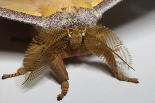 首圖是名為姬透目天蠶蛾(Antheraea pernyi)的中大型飛蛾,觸角雙櫛齒狀而身體、翅身為粉褐色,翅膀中央有著漂亮的桃紅色擬眼紋,2020 年英國布里斯托大學團隊們開始研究這些「失聰」飛蛾如何躲避蝙蝠的追捕,他們發現,姬透目天蠶蛾可以透過身體上的吸音鱗片來躲避蝙蝠。