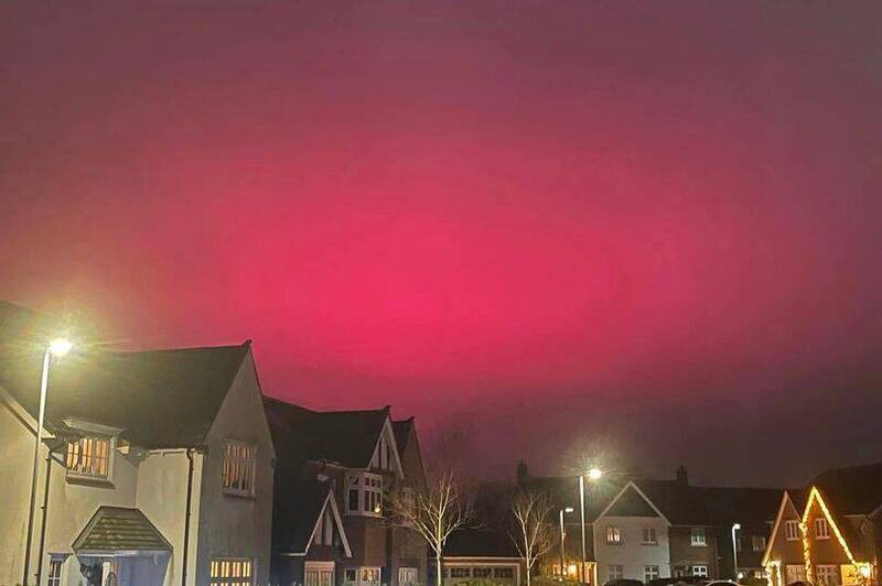 英國一名女子接到母親電話,看到天空突然一片紅,讓她好奇是什麼原因造成此一現象;她認為紅光的源頭是附近的溫室照射光線,但有網友開玩笑回應「聖誕老人的紅色外套在天空中發光」。