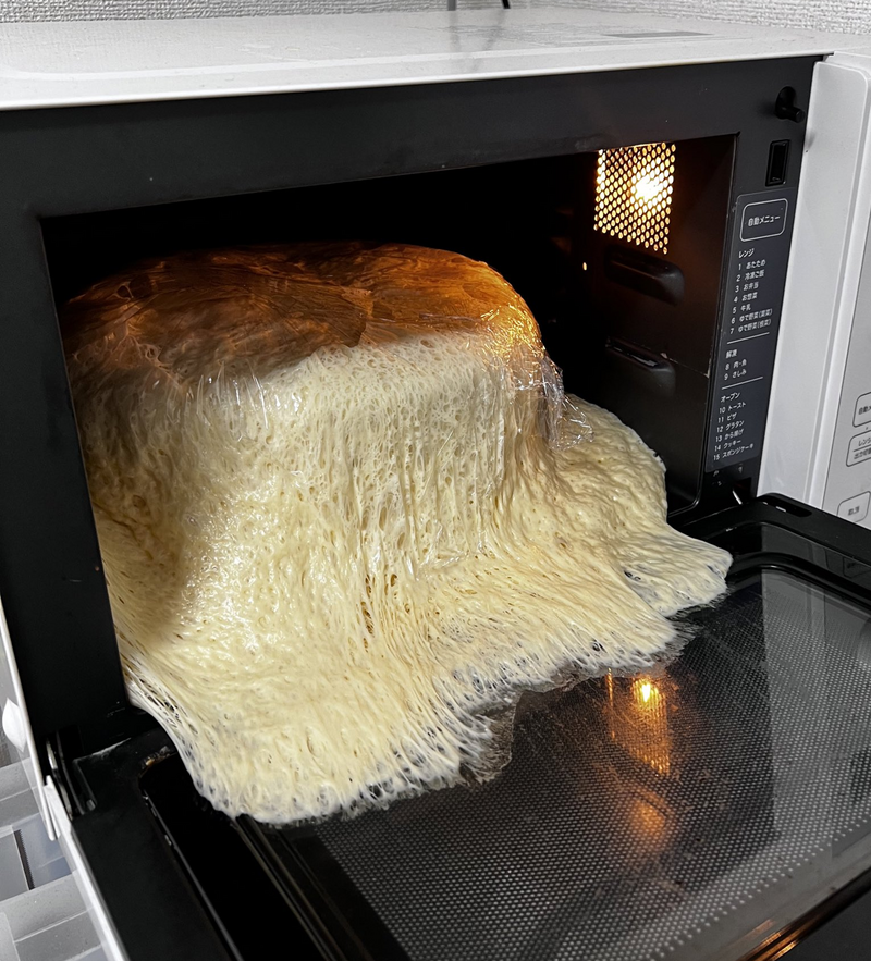 Twitter名為「nako」的日本女網友平時喜歡在家自行烘焙各種糕點,她29日PO文說,自己忘記製作麵包用的麵糰還在烤箱裡面發酵,等她打開烤箱,才發現麵糰已經變成數百條細長、像是一大坨麵條的狀態。