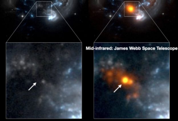 現在利用詹姆斯·韋伯太空望遠鏡強大的觀測能力,同團隊發現了這個驅動強光的「引擎」大部分發射中紅外線,占系統總紅外線發射量 70%。此外,引擎源頭半徑不超過 570 光年,與整個合併系統(總跨度約 65,000 光年)相比僅占很小一部分。