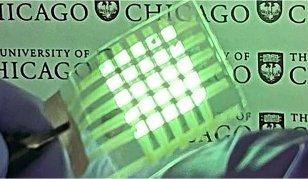 芝加哥大學茲克分子工程學院的研究人員開發出超薄 OLED 顯示器,尺寸可拉伸至原來的兩倍以上,不僅具柔性,同時維持發光和清晰的圖像。