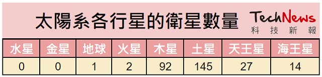 ▲ 太陽系各行星目前各自擁有的衛星數量。