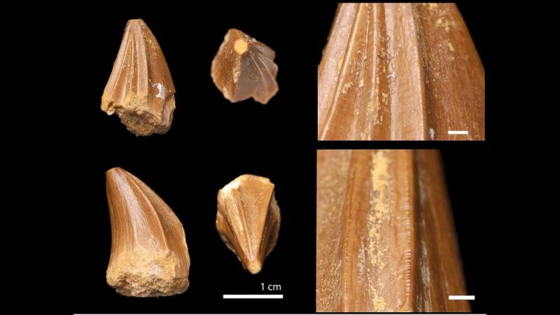 最近英國巴斯大學古生物學團隊發現 7,210 萬到 6,600 萬年前、白堊紀最後一期「馬斯垂克期」化石,在摩洛哥 Oulad Abdoun 盆地南部 Sidi Chennane 出土新滄龍物種,團隊命名為 Stelladens mysteriosus,體型約海豚兩倍大,與其他滄龍不同之處在於形狀特異的牙齒。