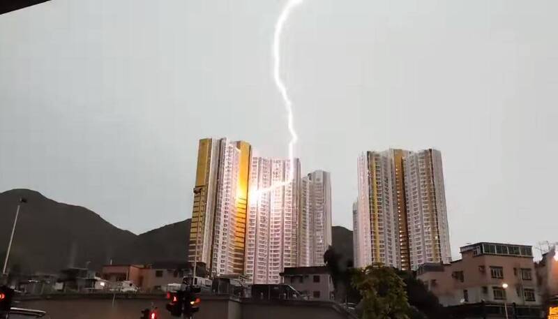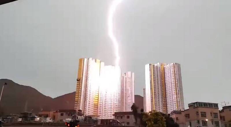 該網友在臉書PO出一段影片,影片的遠處有2棟的白色高樓,天色看起來陰陰的,突然有3道閃電打在遠方的同一處,原PO在貼文中表示「這戶人家,是渡劫還是發誓,還連劈三次。」