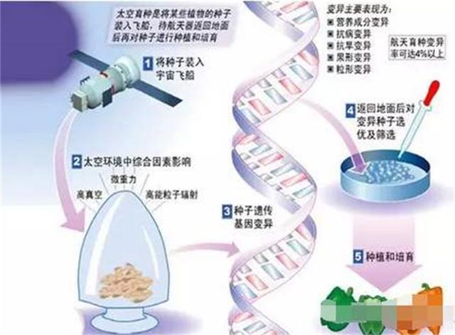 相較於地面環境,太空中由於缺乏大氣、磁場更弱、重力也更弱,因此來自太陽的輻射、帶電粒子更密集,攜帶著更高的能量,衝擊生物組織的時候就可能使生物的基因突變,獲得了新的基因材料。而這個過程毫無疑問也是隨機的,並不能保證種子到太空一圈下來就增產。變異只是第一步將經過太空環境的種子種下去,挑選出有利於人類的性狀,果子變大或者口味變得更好都在選擇範圍內,在以往的太空育種過程中,的確有不少植物的果實長得更大,但也有連種子也不結了,或者果實的口味發生了極大的變化,甜的變酸、酸的變淡,有的生長週期變長,有的生長週期變短,總的來說突變是很多方面的,並不集中在體型的變化;