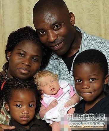 2010年7月,在英國倫敦東部的伍爾維奇,一對尼日利亞黑人夫婦喜得他們的第三個孩子。讓所有人意外的是,這個新生女嬰居然是典型的白種人,長著漂亮的藍眼睛和捲髮。父親本特別強調:“我和妻子很相愛,她一定會忠於我的。就算她沒有忠於我,孩子也不會長成白種人。”遺傳學專家表示,這個孩子很健康。這個女嬰的出生真是“太不尋常”了,基因突變是一個可能的解釋。英國一場婚禮上頻出不幸事救援者目瞪口呆